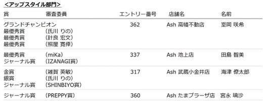 アップスタイル部門 グランドチャンピオン Ash 高幡不動店 室岡 咲希