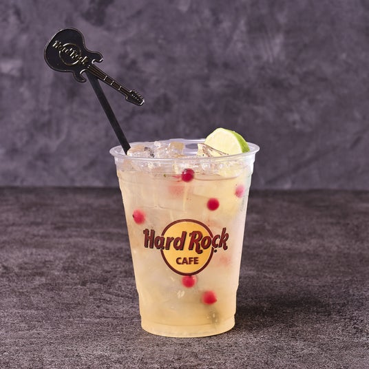 スペシャルカクテル「イルミネーション」は、アルコールにくわえ、アルコールに弱い方はもちろんのこと、お子様も楽しめるノンアルコールの2種類をご用意しました。いずれも、街に輝くクリスマスイルミネーションをイメージした華やかなプレゼンテーションで提供。アルコールVer.は、赤と白のコントラストでクリスマスイルミネーションをイメージ、スパイスラムにアップルジュース、クランベリーとキャラメルシロップをミックスして生クリームをフロートしました。ノンアルコールVer.は、アップルジュースにレモネードと生姜をミックスしてジンジャーエールで仕上げています。どちらもハードロックカフェロゴ入りカップに、ギターシェイプのマドラーと共に提供します。(カップとマドラーはお持ち帰りいただけます)