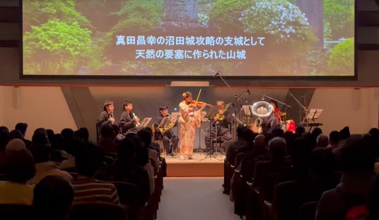 「お城EXPO」では、お城にゆかりの深い歴史ドラマや大河ドラマのテーマ曲を演奏するコンサートを開催してきました。2021年からは東京都交響楽団の金管楽器メンバー5名によって結成された「NINJA BRASS」が登場。その後、ヴァイオリンの美しい音色を奏でる「お忍びの姫君」、さらにパーカッション(打楽器)の「赤忍者」も加わり、必聴・必見のステージへと進化しています。