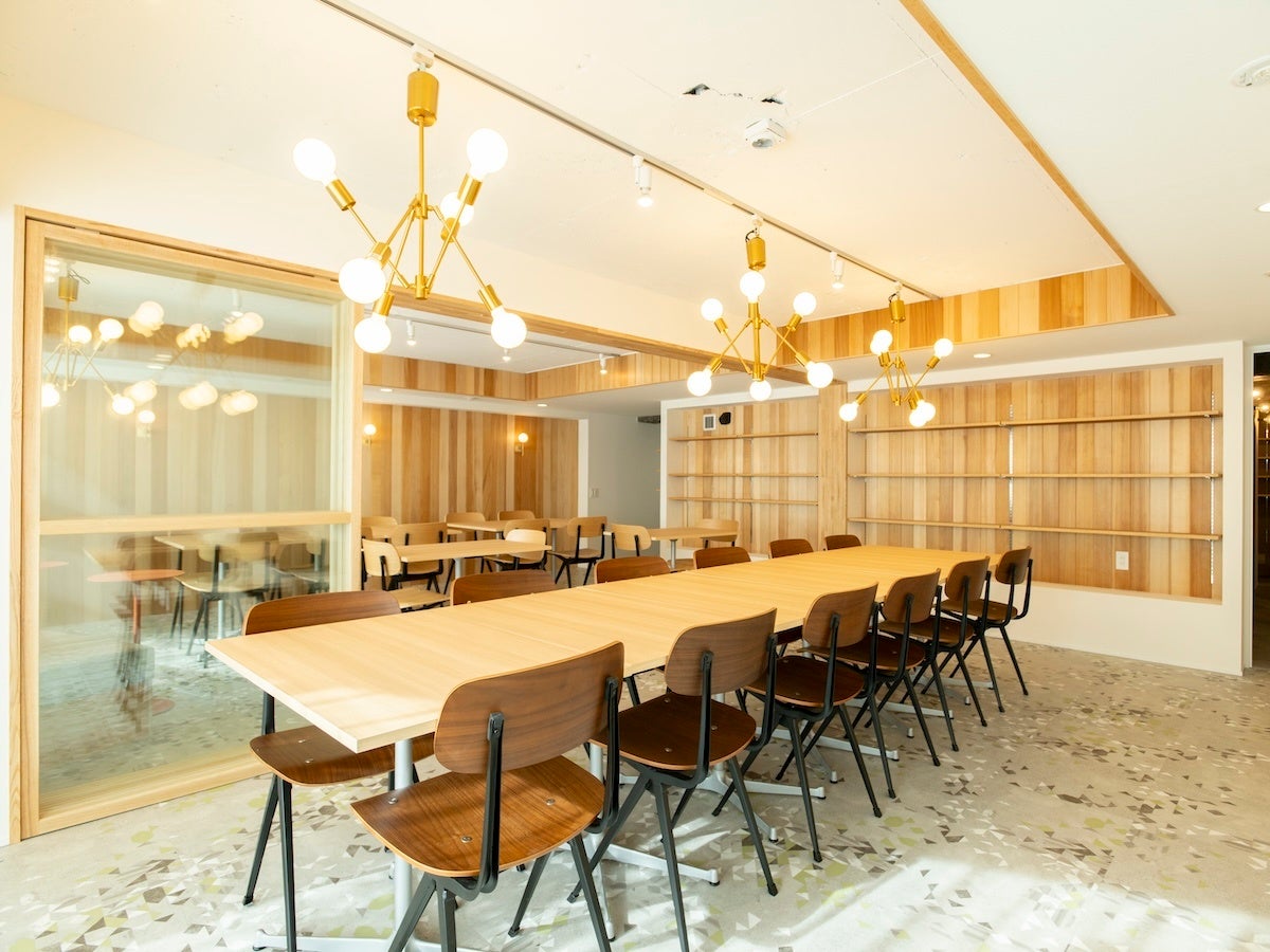 研修や大人数でのミーティング、ランチなどの交流に使える広い空間。