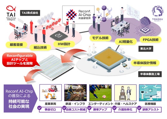 Tokyo Artisan Intelligence株式会社と国立大学法人東北大学は、『TAI×東北大学 Reconfigurable AI-Chip共創研究所』を設立しました。東北大学の研究基盤とTAIの開発力を活かし、GPU依存のAI市場に対して省エネで高性能なAI活用を支える国産半導体チップを開発し、日本が再び半導体チップを設計・製造するための取り組みです。TAI社はAI半導体分野を牽引しつつ、株式上場(IPO)を通じて半導体チップ事業を国内外に展開する方針です。本研究所は、マレーシアOPPSTAR社とのチップ設計と台湾UMC社とのチップ製造で協業し、東北を舞台とした日本・台湾・マレーシアの国際分業構造を確立することも設立の狙いです。