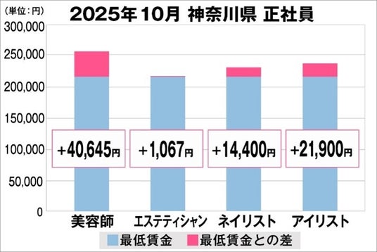 神奈川県の美容業界における採用時給料に関する調査結果(正社員)2025年10月美プロ調べ