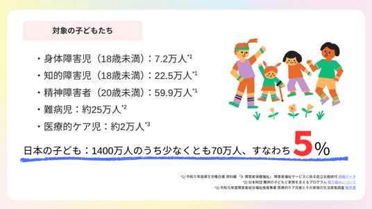 日本では、20人に1人の子どもが病気や障がいを抱えています。こうした子どもたちとその家族は、「病状が悪化したら」「周りに迷惑をかけるのでは」といった不安から、映画館などへの外出を諦めざるを得ない状況にあります。