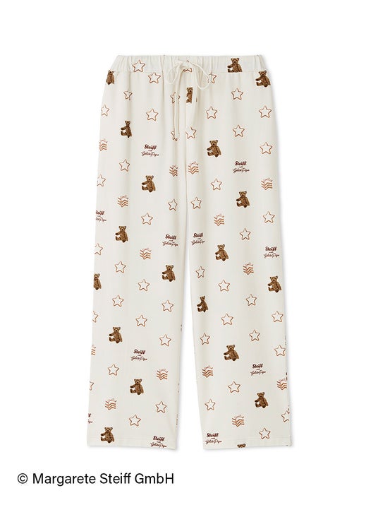 プルオーバーには、美味しそうなお菓子の家を大きくプリント。Steiffとgelato piqueのダブルネームのロゴ入りで、特別感のあるデザインに仕上げました。ロングパンツは、星型のクッキーとベアを総柄でデザインしたホリデームード高まるアイテムです。焼き菓子のようなぬくもりあるカラーリングと、ゆったりとしたシルエットが特徴で、ペアコーディネートもお楽しみいただけます。