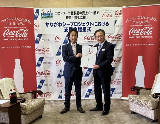 コカ・コーラ ボトラーズジャパン株式会社(本社:東京都港区、代表取締役社長 最高経営責任者:カリン・ドラガン、以下 当社)は、神奈川県との「かながわシープロジェクトに係る連携・協力に関する協定」に基づき、情報サイト「Feel SHONAN」掲載店舗で販売された「コカ・コーラ」および「コカ・コーラゼロ」の売り上げの一部など1,155,593円を支援金として寄付します。寄付にあたり、2025年11月19日に神奈川県知事の黒岩 祐治様を表敬訪問し、支援金目録を贈呈しました。