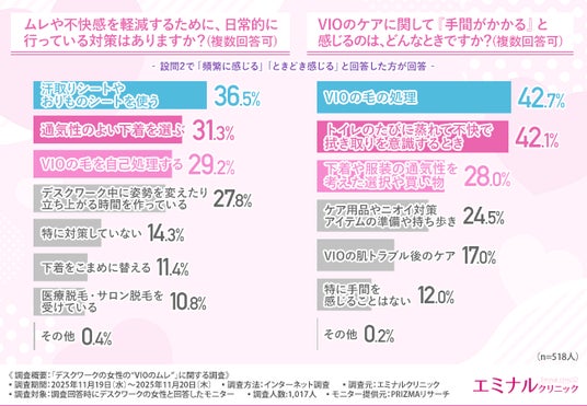【働く女性の2人に1人が実感するVIOのムレ】「かゆみ」や「におい」で集中力低下に悩む声、一方でVIO脱毛経験者の7割が「不快感の軽減を実感」