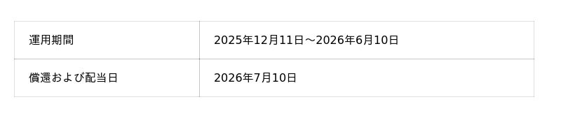 2025年12月2日(火)より一般募集を開始した以下ファンドにつきまして、おかげさまで募集金額全額のお申込をいただき、募集を終了したことをお知らせいたします。