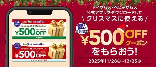 2025年11月28日(金)~12月25日(木)の期間、トイザらス・ベビーザらス公式アプリをダウンロードするとクリスマスに使える500円OFFクーポンがもらえます。クリスマスクーポンを使って、キダルト商品もお得に購入することができます。