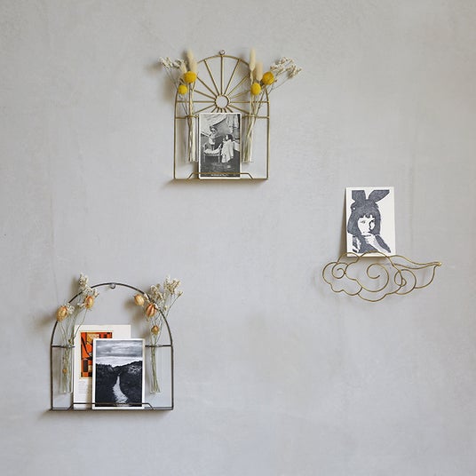 本シリーズは、神棚としてだけでなく、飾り棚(ウォールデコ)としてもお使いいただけます。デザインに合わせて、スチールと真鍮の2色をご用意しました。さらに「凪」と「日の出」には、ガラスビーカーが2個付属しています。お気に入りのポストカードや写真、花などを飾るなど、ライフスタイルに合わせて自由に楽しめます。