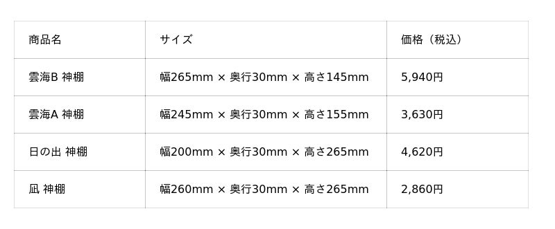雲海に新デザインが登場。お神札の設置スペースが拡大