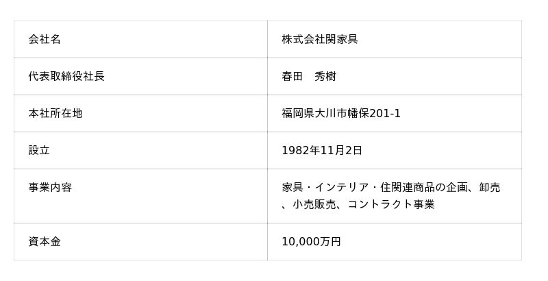 リリース発行企業:株式会社関家具