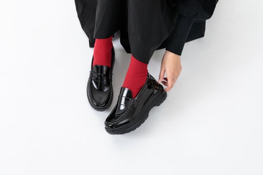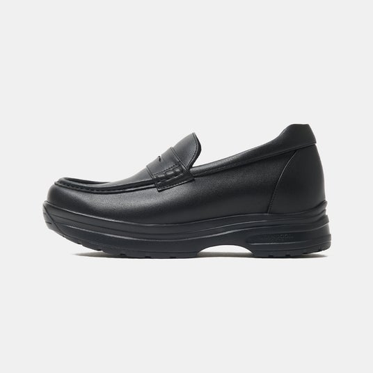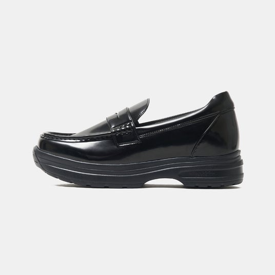 プレーンなローファースニーカーの佇まいの中に、内部にさりげなく高さを仕込んだ構造を備えることで、無理なく自然に6.5cmのスタイルアップを実現。スリムなローファーシルエットが脚のラインをすっきりと整え、足元から全体の印象まで洗練された雰囲気へと引き上げます。
