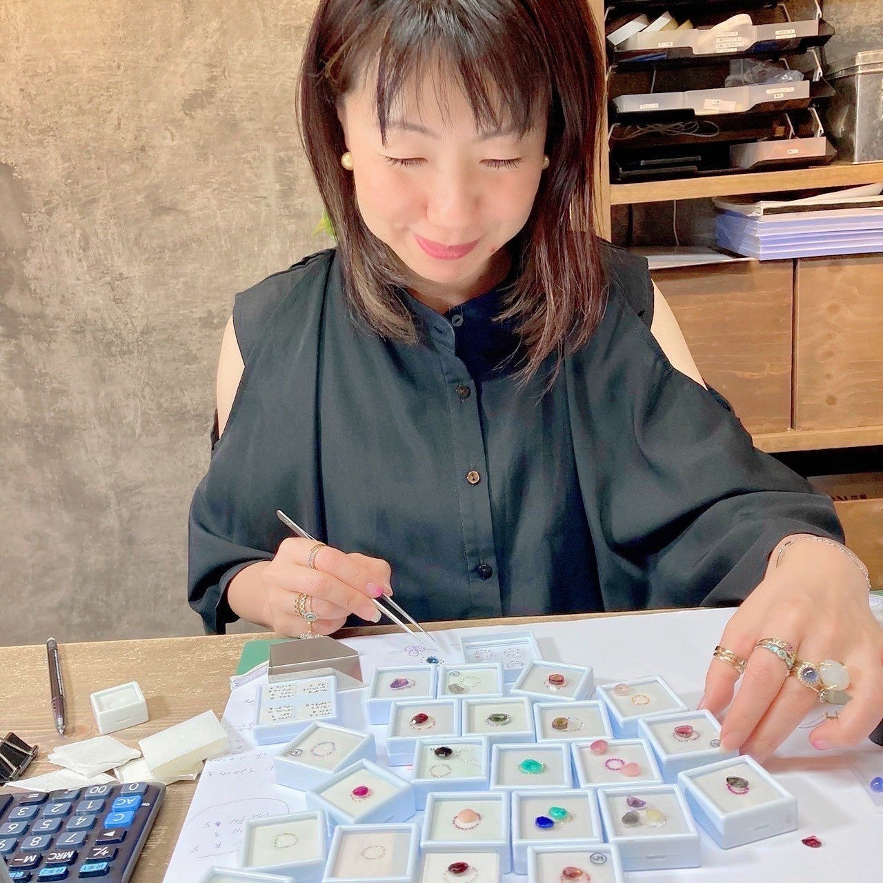 @taisuke_parcelle)が買い付けたルビーやサファイアの中から、透明感の際立つ石を選び、配色を重ねて仕立てました。