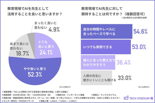 こうした現状から、教育現場でAIを“先生”として活用することについて約8割が「良い」と思うことがわかりました。