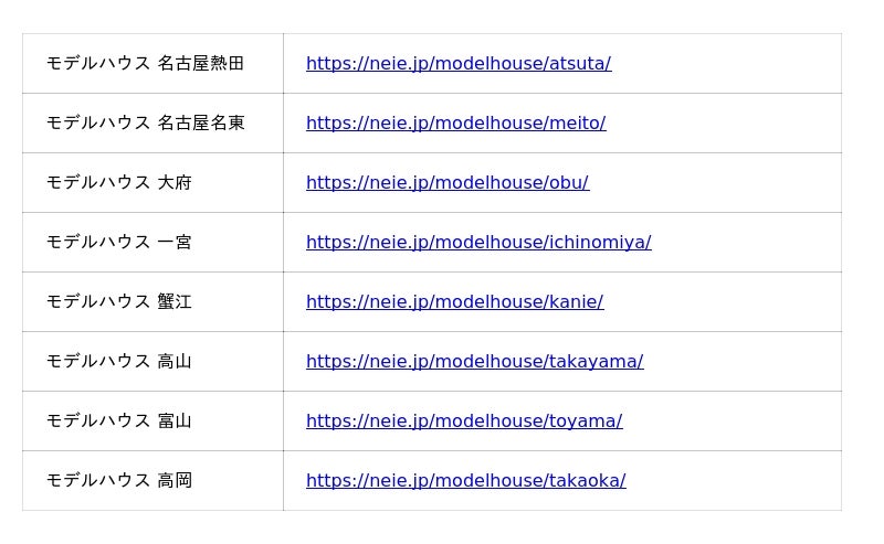 neieは、愛知県・岐阜県・富山県を中心に、計8拠点の店舗を展開しています。