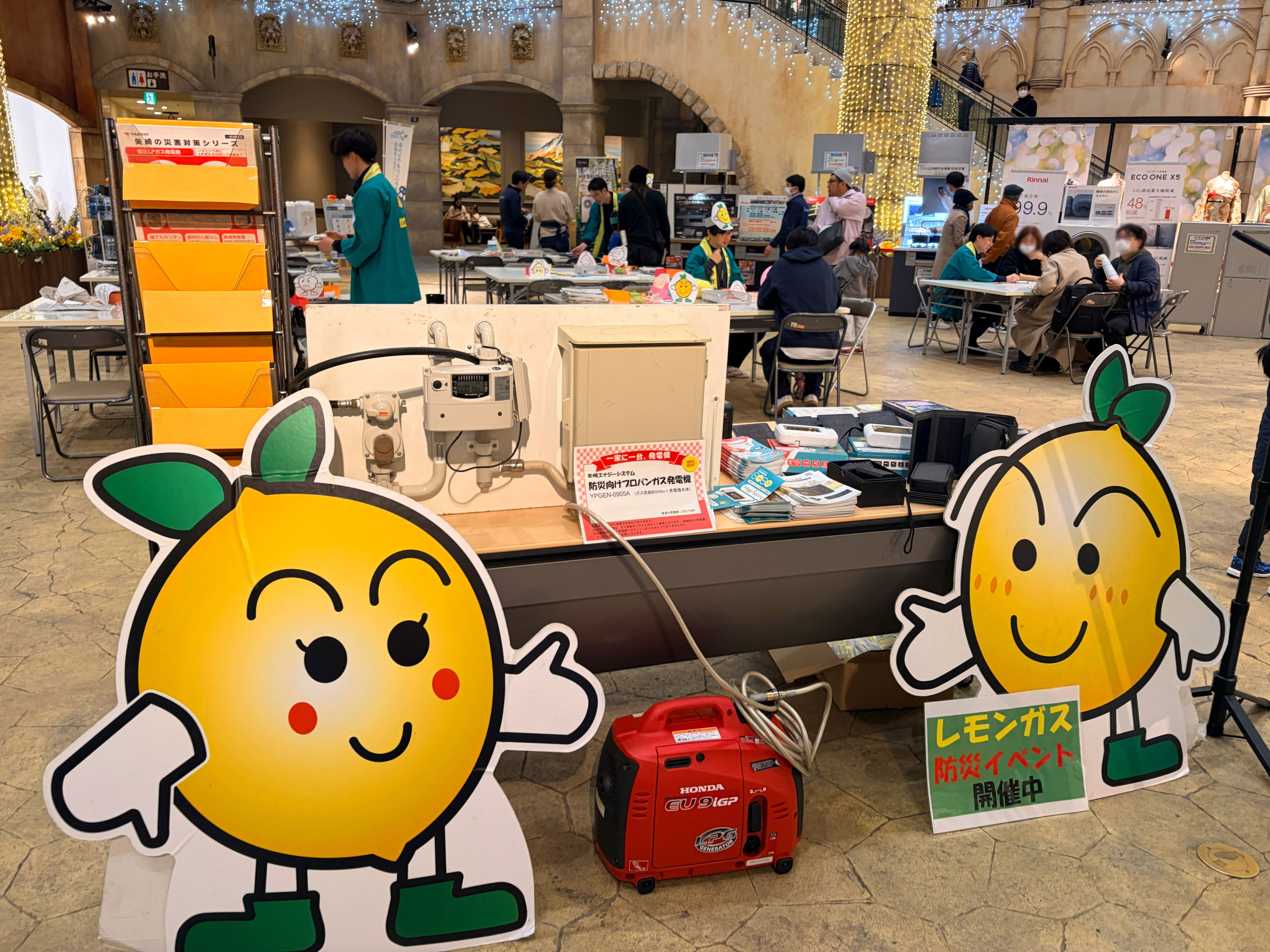 レモンガスのマスコット「レモンくん」と会場の様子
