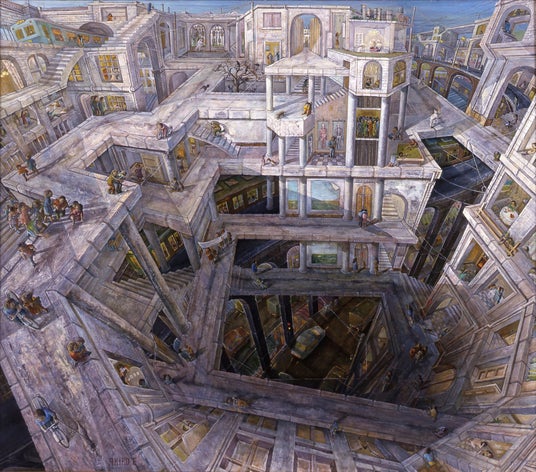 セクション1では、対象を克明に描く絵画の潮流・スーパーリアリズムの第一人者として1970年代から活躍し、なま玉子やゼリー等を今にも動き出しそうな姿で描いたことで知られる昨年逝去された画家・上田薫の油彩画作品(《なま玉子Q》、《流れL》、〈コップの水〉シリーズから3点)を展示します。
