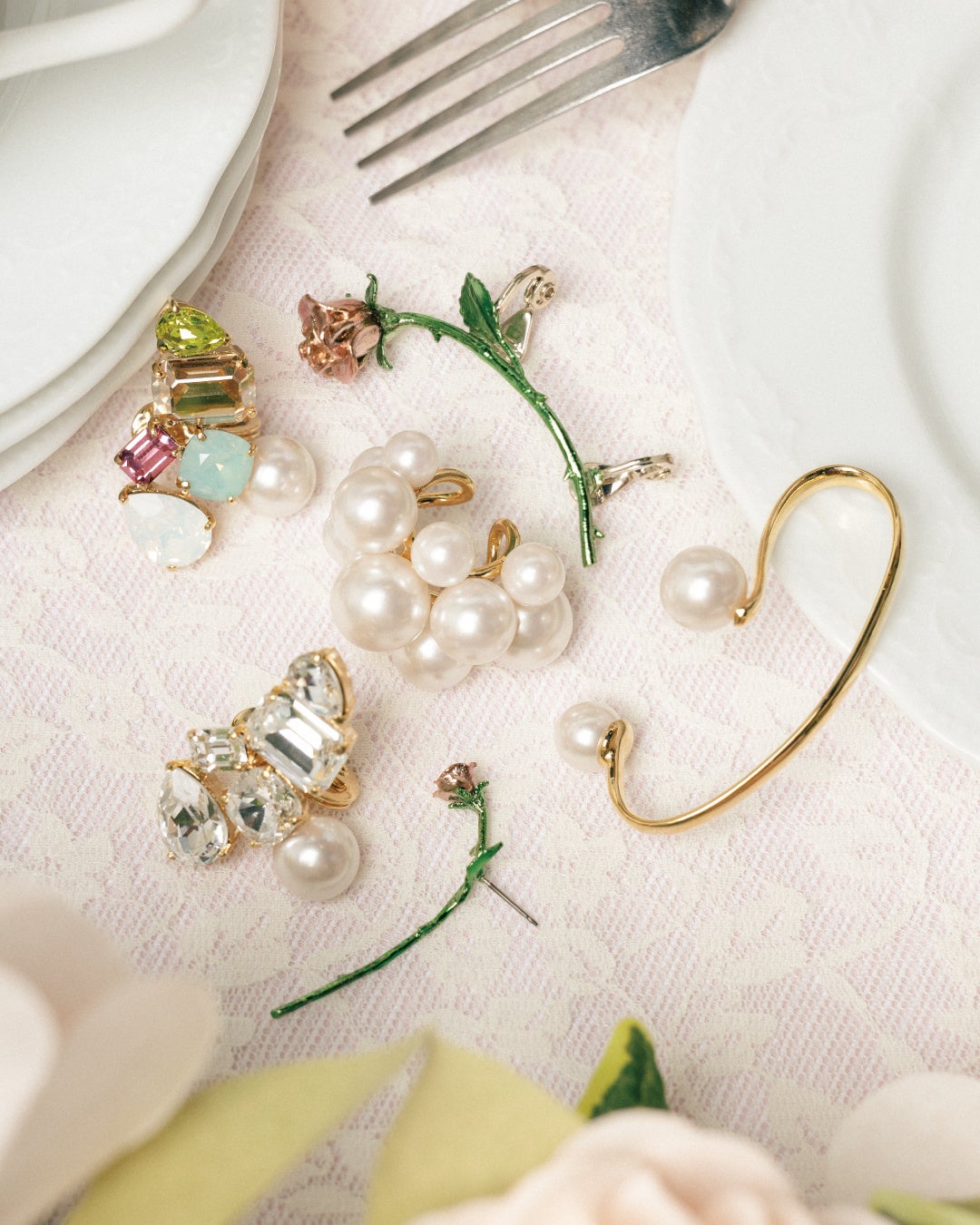 イヤージュエリーを主役にヘアスタイルやメイクを合わせたくなるような、デコラティブで華やかなイヤージュエリーです。