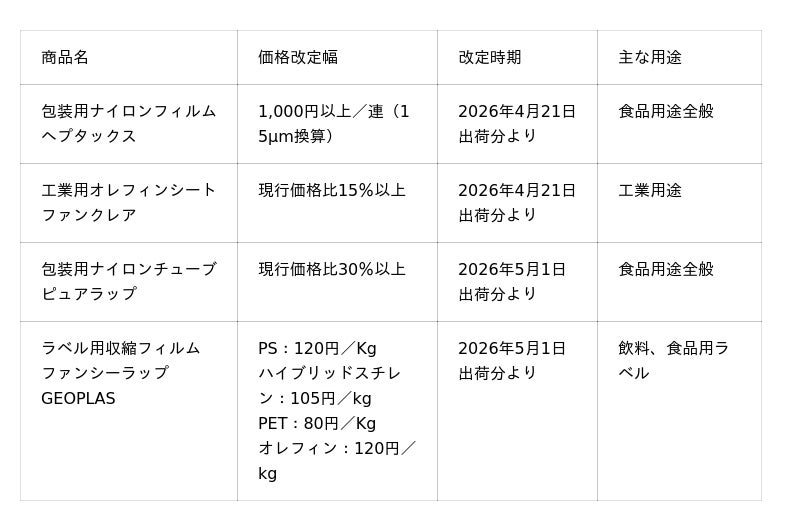 グンゼ株式会社は、プラスチックカンパニーが販売する製品について、価格改定を実施することを決定しましたので、お知らせいたします。